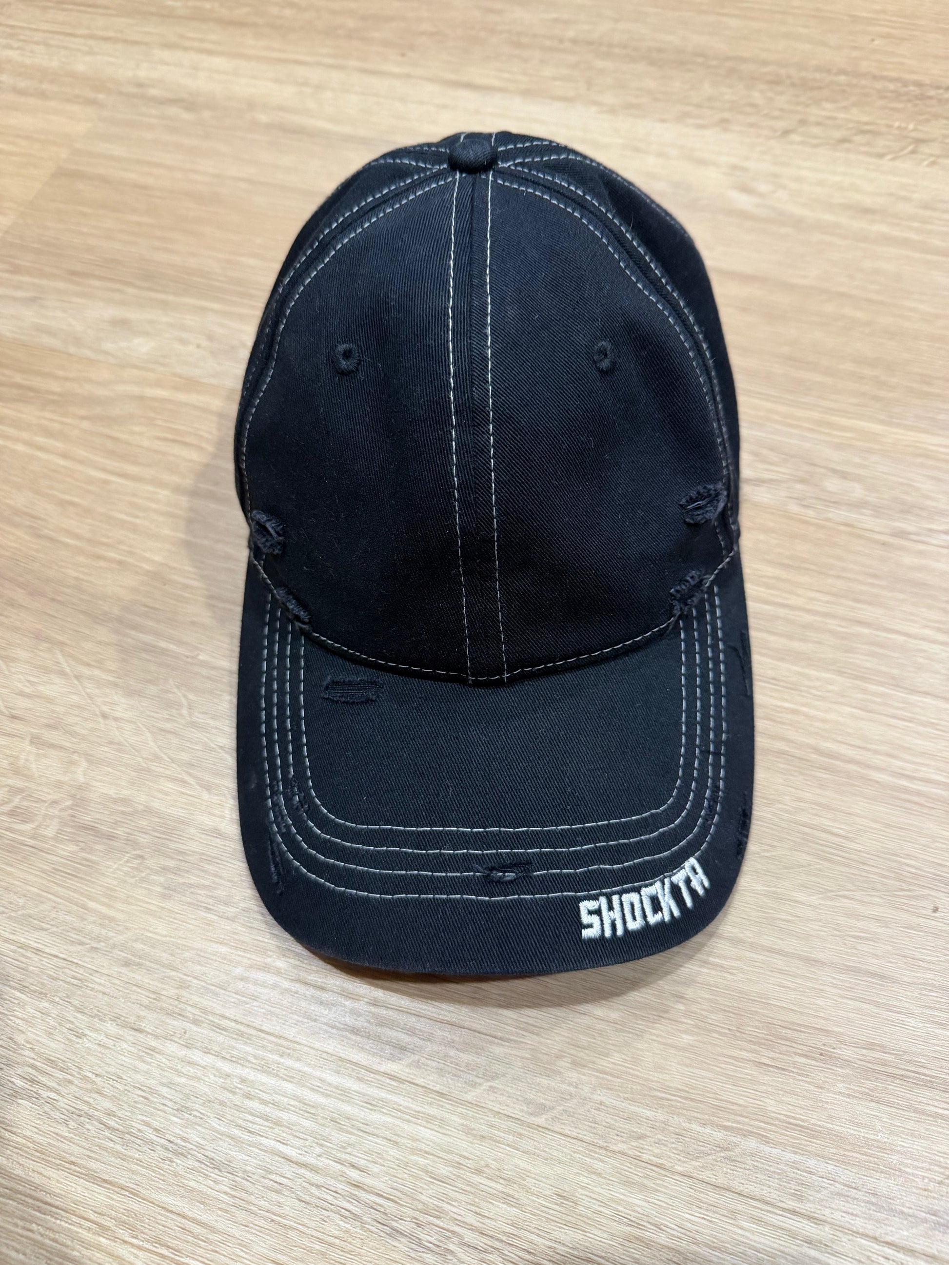 Our distressed cap is the perfect hat for you if your looking to complete a nice fit but also have good quality coverage from the brim. It includes white stitching and embroidery with the logos located on the brim and the strap. To pull off the distressed look we added a few frayed cuts.